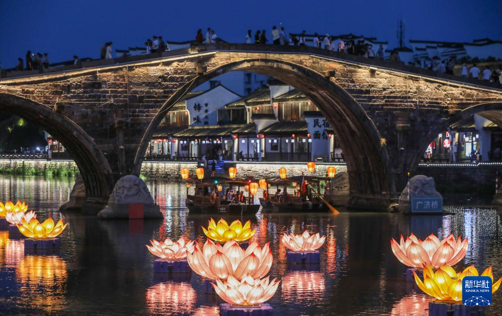 10月2日,游客参观了旧城。国庆日和总理节的“双重节日”开始了在Z江省杭州的旧城区的“双重节日”的祈祷之夜。游客游览了Canales,运河灯笼的划船船以及广州桥的月球的可视化,并体验了旧沃特敦优雅频道的魅力。照片:新华社通信机构记者Xu yu